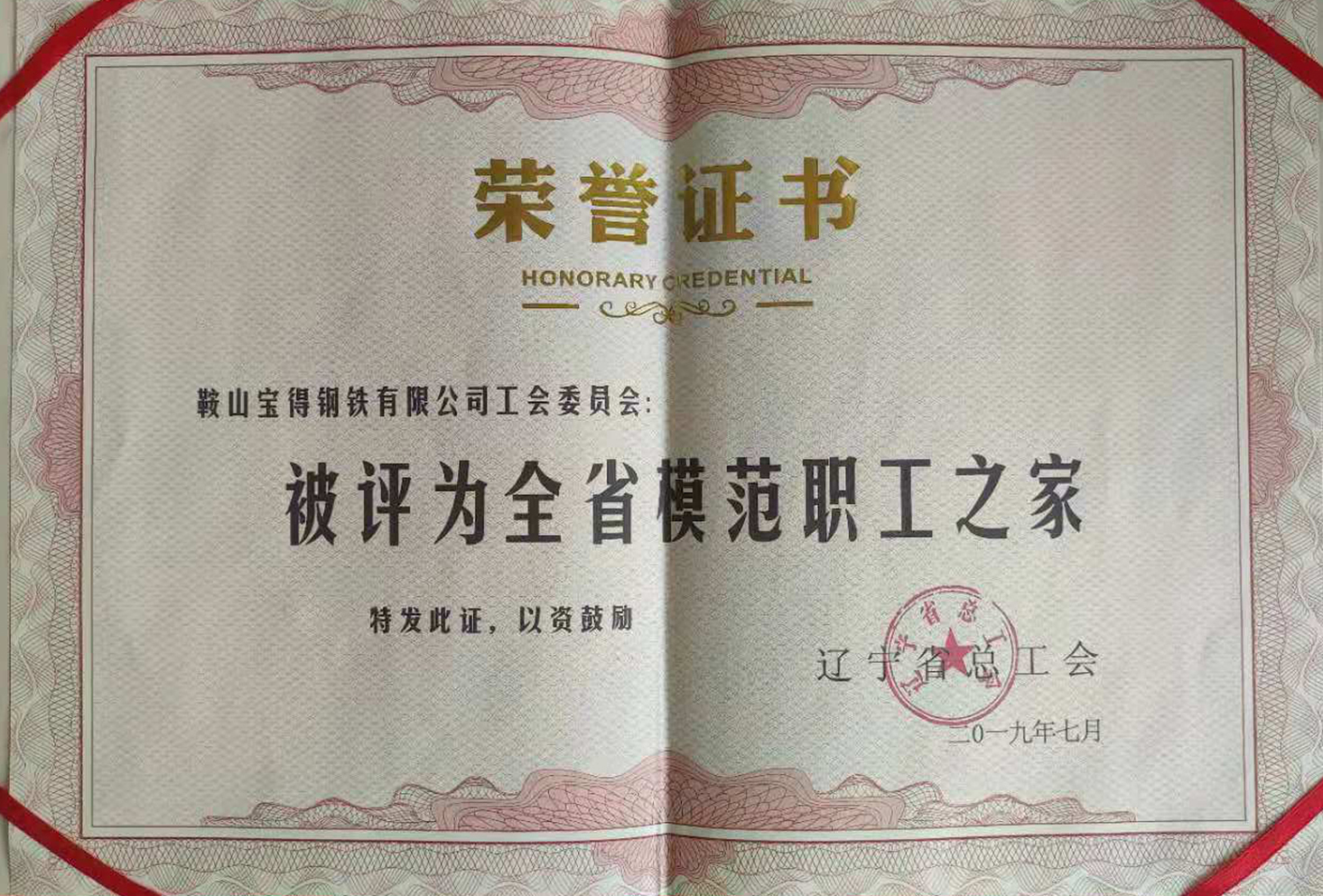 ●2010年度被鞍山市總工會(huì)授予"基層工會(huì)規(guī)范化建設(shè)標(biāo)桿單位 "。